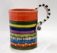 Neben der Formenvielfalt zeigt diese Ausstellung auch Beispiele aller keramischen Techniken: So zum Beispiel Tassen aus dem Holzbrand von Rachel Wood, Markus Böhm und Pep Gomez oder aus dem Gasbrand von Martin Goerg und Thomas Thunig. Sie finden ganz verschiedene Fayencen von Hans-Peter Meyer, Christine Duncombe-Thüring, wunderbare Glasurmalereien von Nine Milacic, Maria Mayer oder Eva Liebmann, Craquelée von Beate Bendel und Felix Reinhard Mields, Lüsterglasuren von Christiane Landbeck oder Sgraffito von Christiane Kleeberg.